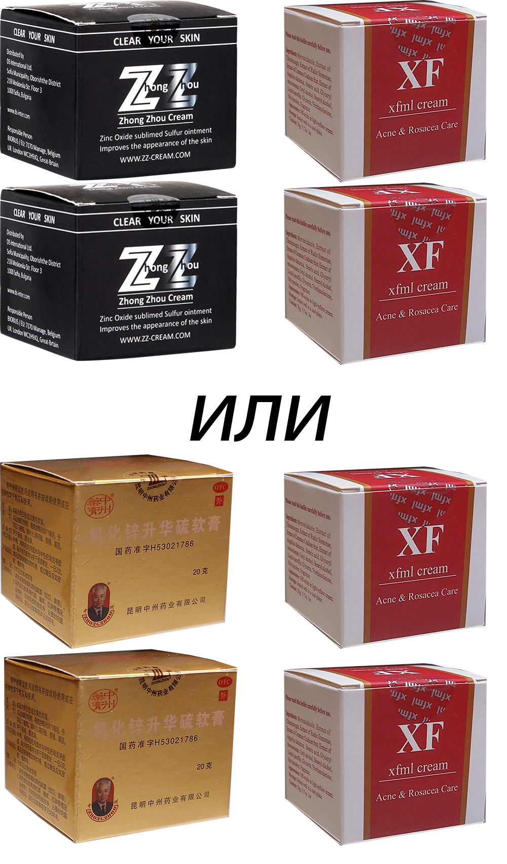 Скидка 15 % Содержит: 2 баночки крема Ксин Фуманглинг и 2 баночки мази Жонгжоу или 2 баночки крема Ксин Фуманглинг и 2 баночки крема ZZ